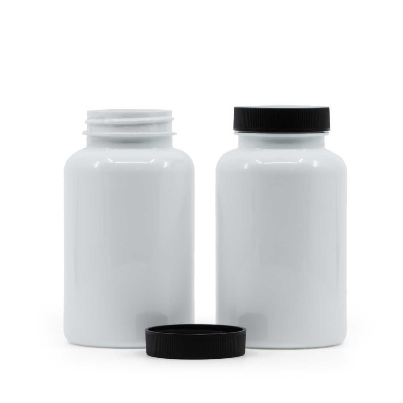 Weiße Kunststoff-Pillendose mit schwarzem Deckel 250 ml