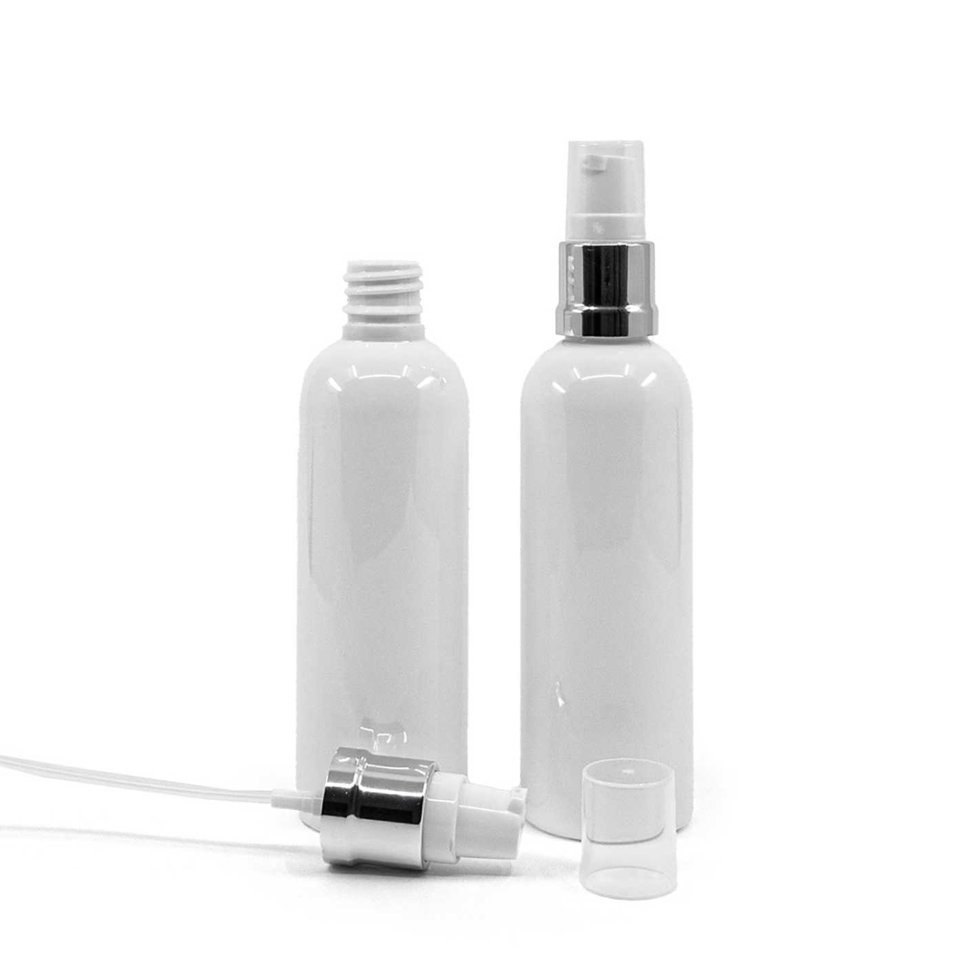 Weiße Kunststoffflasche aus PET mit glänzender Oberfläche. Volumen: 100 ml, Gesamtvolumen 117 mlHöhe der Flasche: 122 mmFlaschendurchmesser: 38 mmHals: 18/410 ... read more