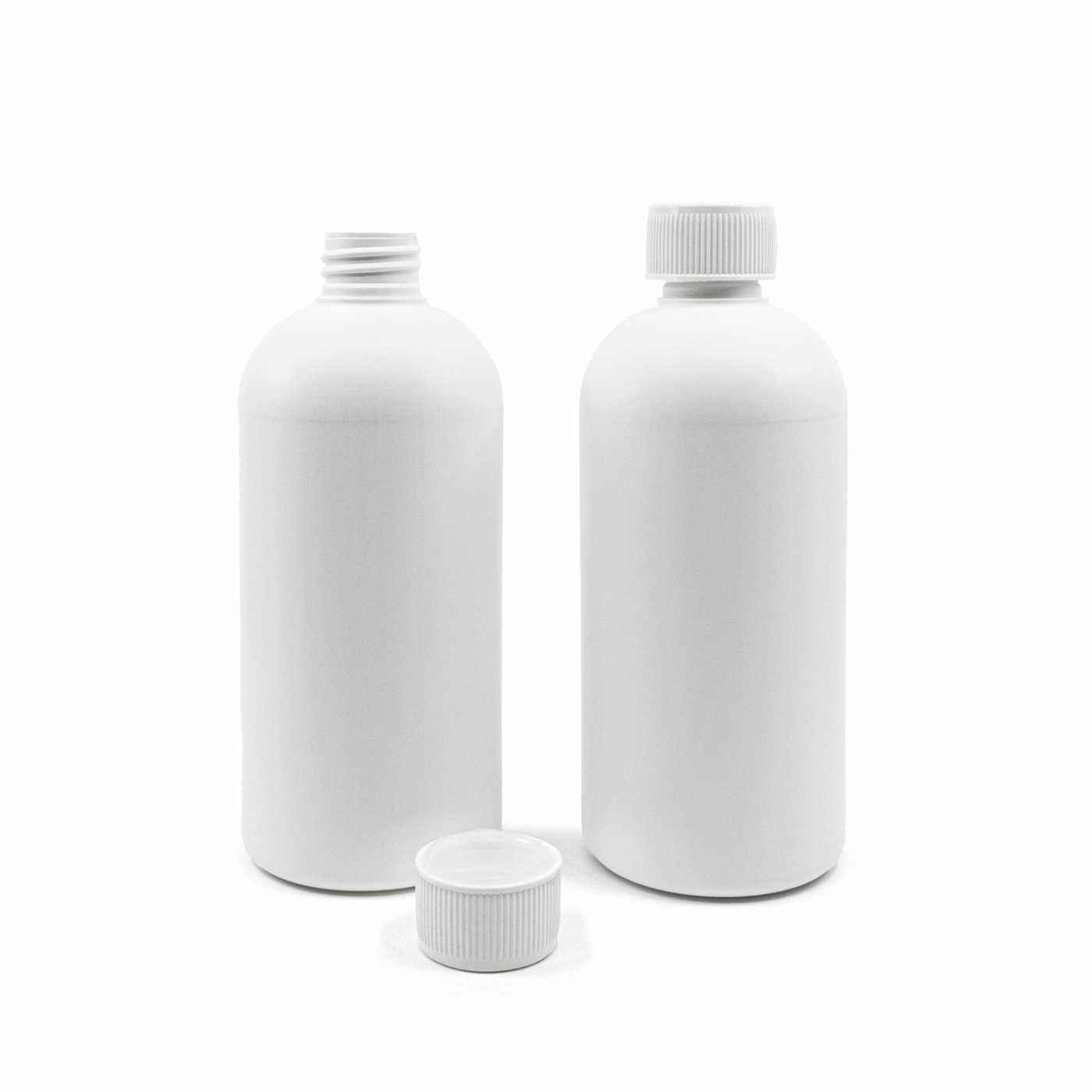 Die HDPE-Kunststoffflasche, weiß, 500 ml besteht aus HDPE (Polyethylen hoher Dichte), das für seine Festigkeit, Haltbarkeit und Sicherheit für verschiedene Arte... read more
