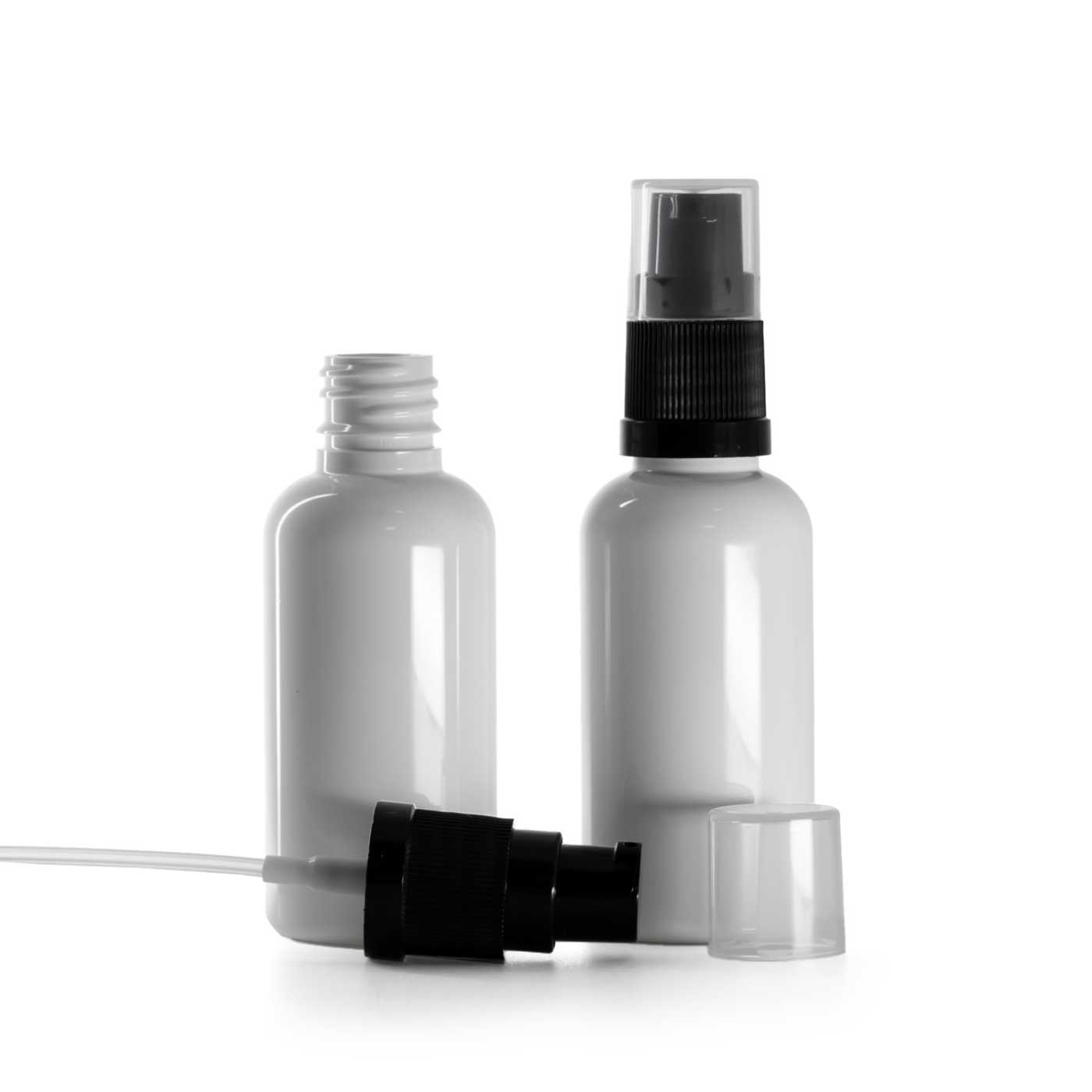 Weiße Kunststoffflasche, schwarze Lotionpumpe, 50 ml