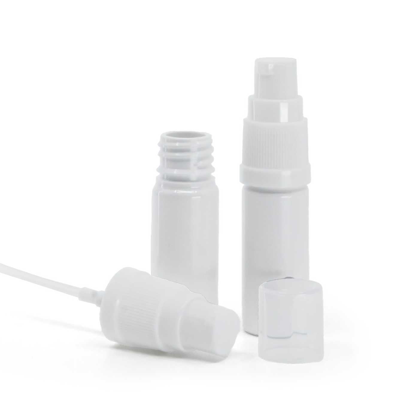 Weiße Kunststoffflasche, weiße Lotionpumpe, 10 ml