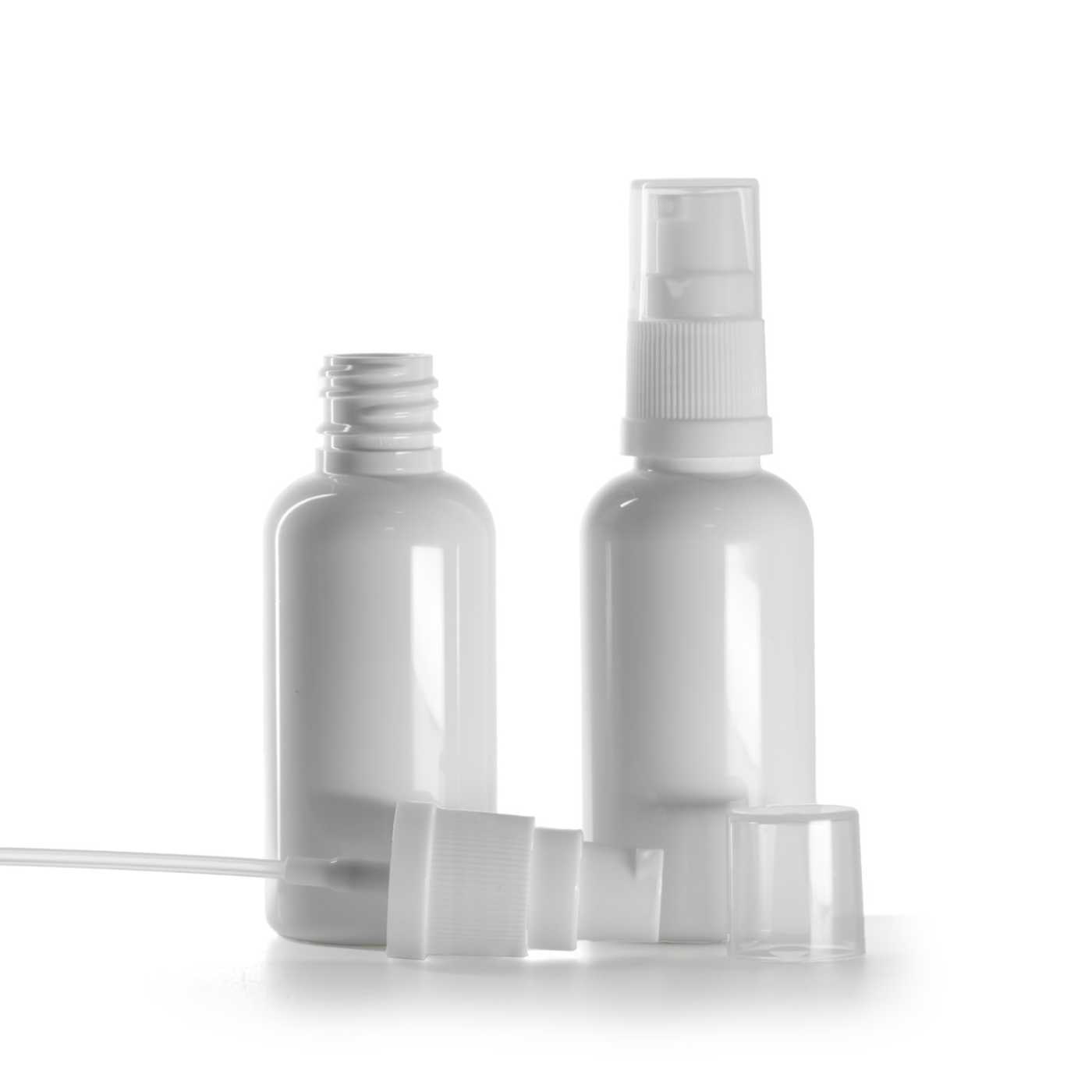 Weiße Kunststoffflasche, weiße Lotionpumpe, 50 ml