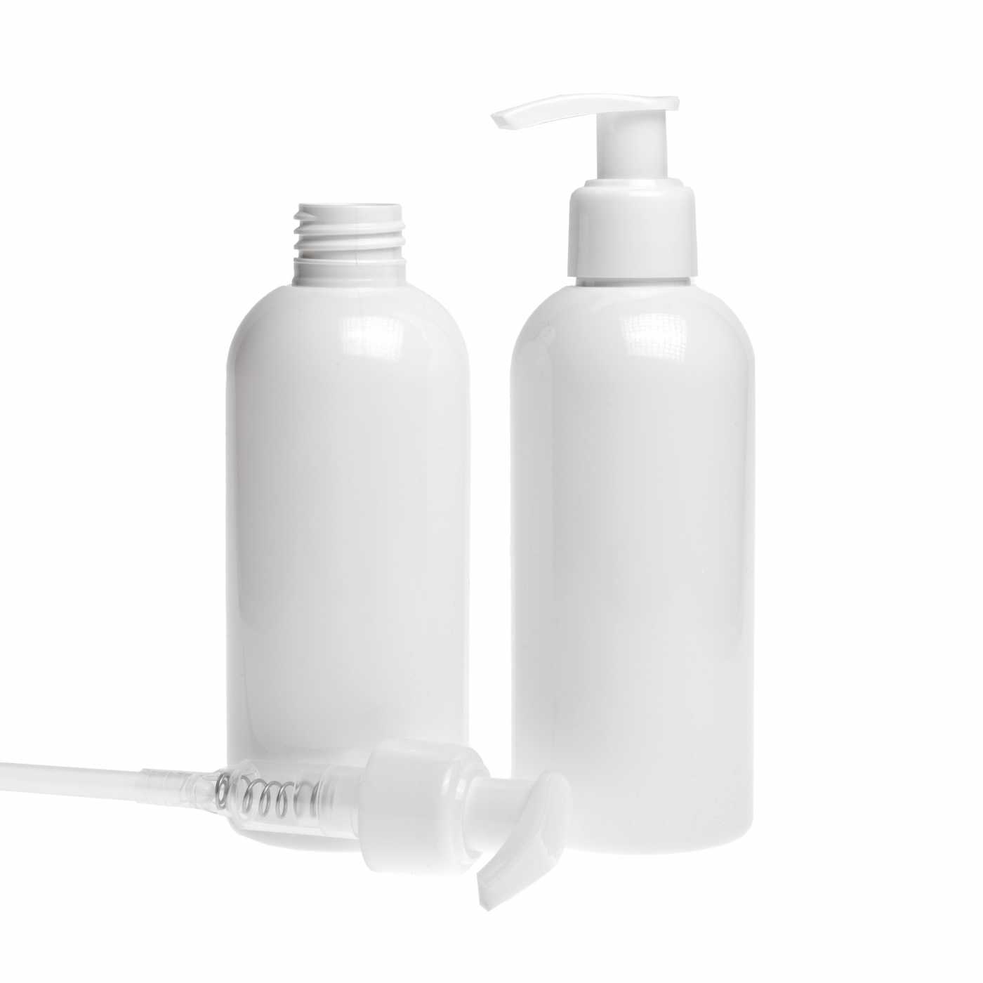 Weiße Kunststoffflasche, weiße Pumpe, 300 ml