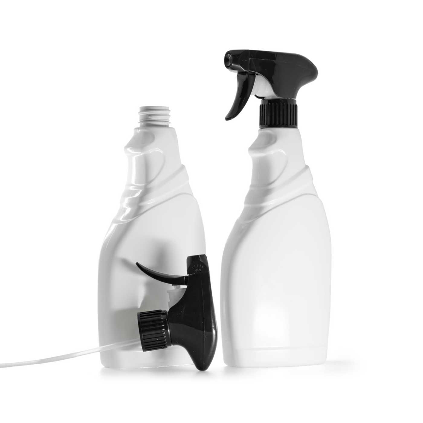 Weiße Reinigungsmittel-Kunststoffflasche, schwarzer Triggersprudler, 500 ml