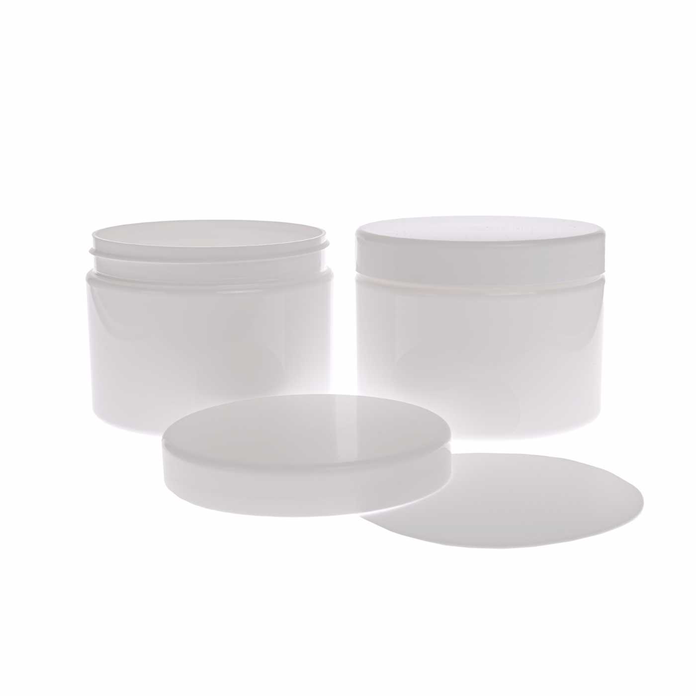 Der weiße Kunststoffbecher ist ein praktischer Behälter für die Verpackung und Lagerung von Produkten, bei denen ein leichter Zugang zum Inhalt und ein wiederholtes Öffnen während des Gebrauchs wichtig sind. Der Tiegel ist aus PET-Kunststoff hergestellt, der häufig in Verpackungslösungen für kosmetische und technische Anwendungen verwendet wird. Sein Design eignet sich für Produkte mit cremiger, gelartiger, pastöser und loser Konsistenz.