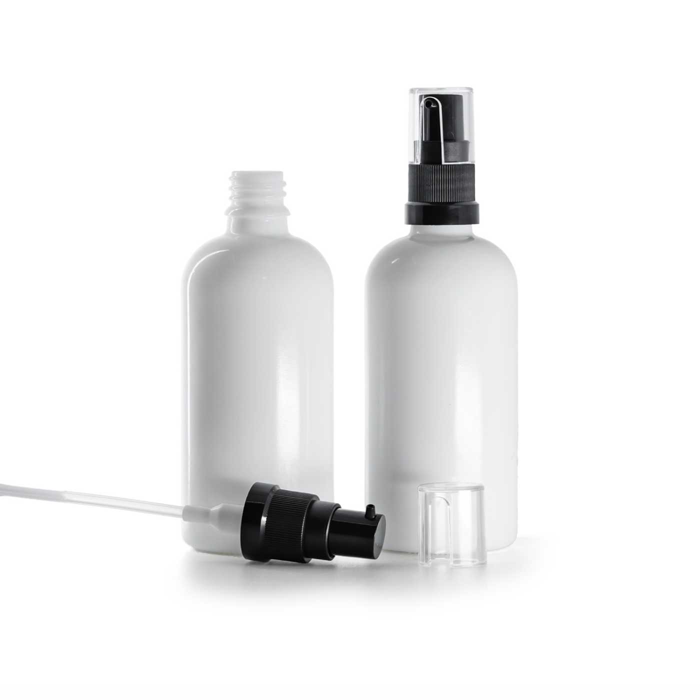 Weißglasflasche, schwarze Ölpumpe, 100 ml