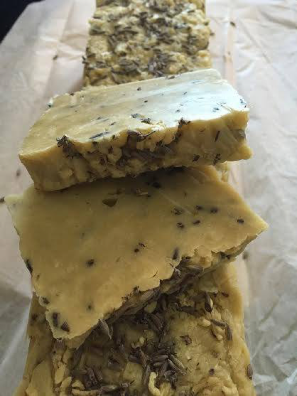 14. Nach 24 Stunden nehmen Sie die Seife aus der Form und schneiden sie in die gewünschten Stücke. Lassen Sie die Seife etwa 2 Wochen lang trocknen, damit das restliche Wasser verdunstet.